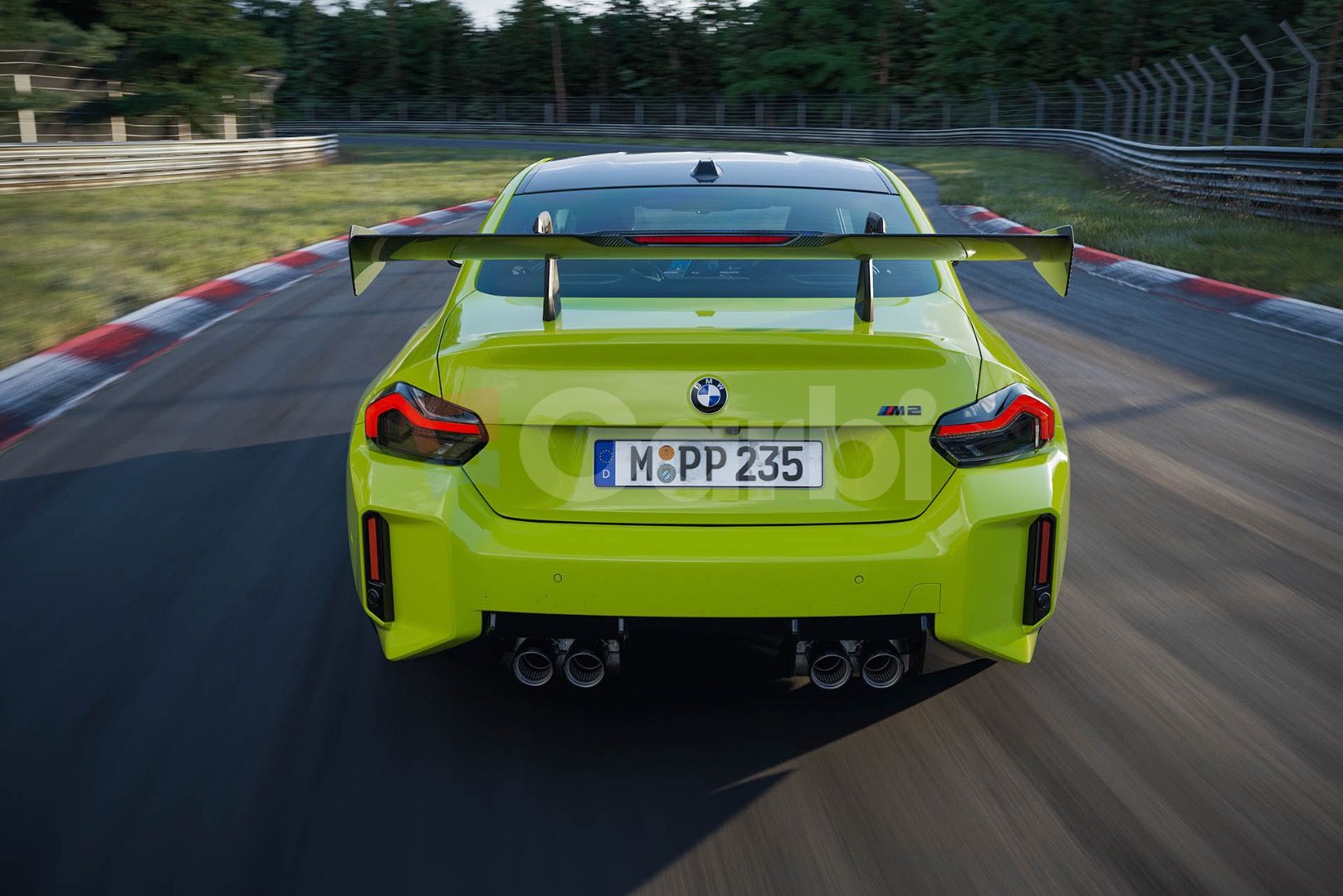 Zadná časť je ešte výraznejšia. Veľké swan-neck krídlo, uchytené zhora, pôsobí na sériovej M2 takmer provokatívne. Lenže má svoju funkciu. V režime Race sa posunie približne o päť centimetrov dozadu a generuje citeľne vyšší prítlak.