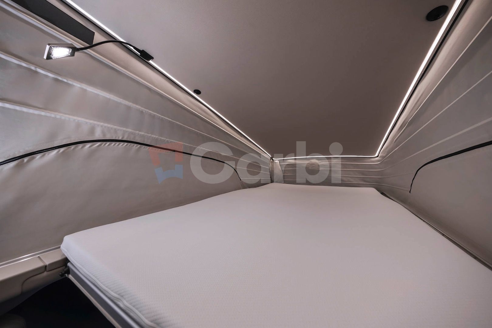 Najviac viditeľnou zmenou modernizácie je výklopná strecha. Mercedes ju prepracoval konštrukčne aj funkčne. Strešný modul je tuhší, lepšie izolovaný a ponúka citeľne viac priestoru nad hlavou. To nie je len marketingový detail. Pri dlhšom pobyte alebo v horšom počasí má kvalita strechy zásadný vplyv na komfort. Horné lôžko je určené pre dve dospelé osoby a vďaka lepšej izolácii pôsobí použiteľnejšie aj mimo letnej sezóny.