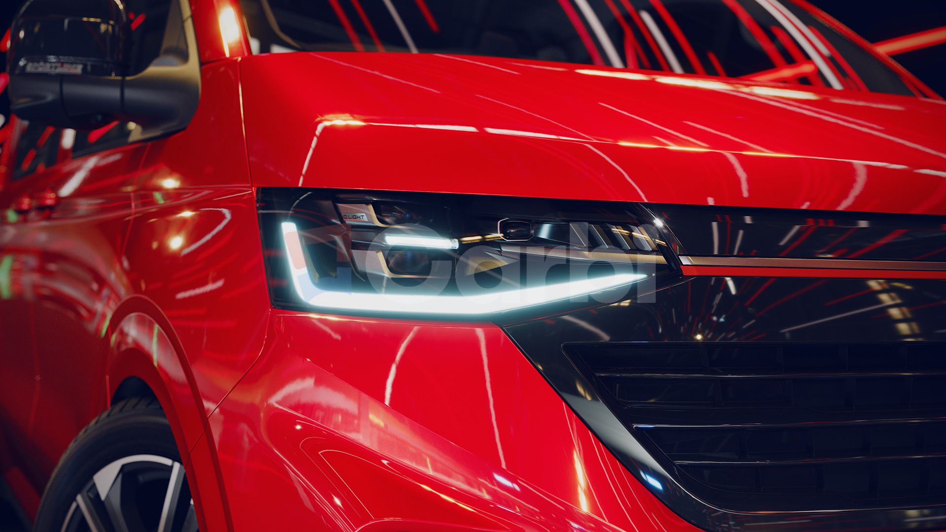 Prvý dojem je kľúčový a Sportline ho zvláda bez zaváhania. Zabudnite na nenápadnú dodávku, ktorá splýva s davom. Tu sú agresívnejšie tvarované nárazníky, bočné prahy, strešný spojler a veľké disky kolies, ktoré by si pokojne vedel predstaviť aj na osobnom aute, toto je GTI v prevedení dodávky, ale bez GTI motora. Červená línia v prednej časti je jasným odkazom práve na tieto športové modely Volkswagenu a funguje presne tak, ako má. Nič nemení na funkčnosti, ale dramaticky mení vnímanie auta. Zrazu to nie je len obyčajný Transporter, ale Transporter, za ktorým sa ľudia obzerajú. Najmä ak má podobnú farbu ako to, čo si Volkswagen pripravil v prezentačných fotkách.