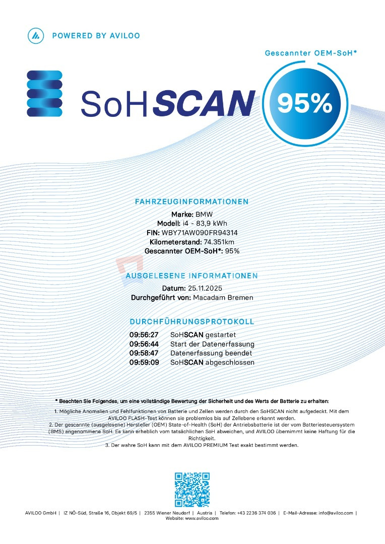 SOH certifikát Aviloo 95% zdravie batérie