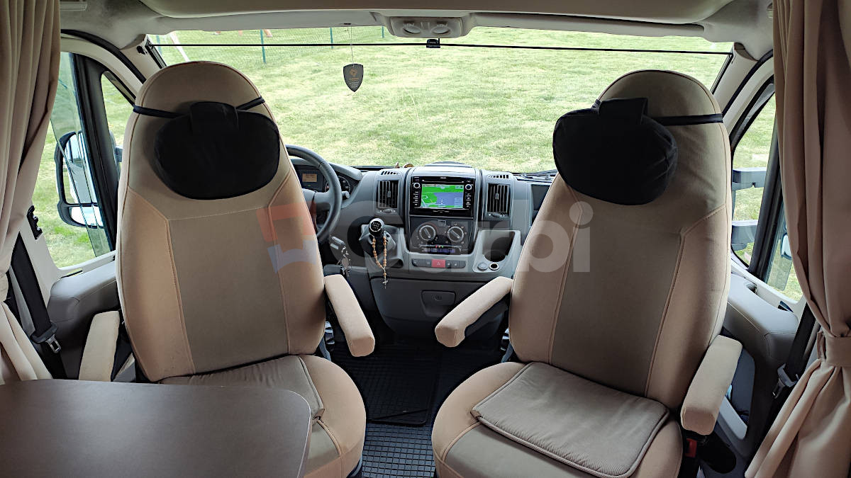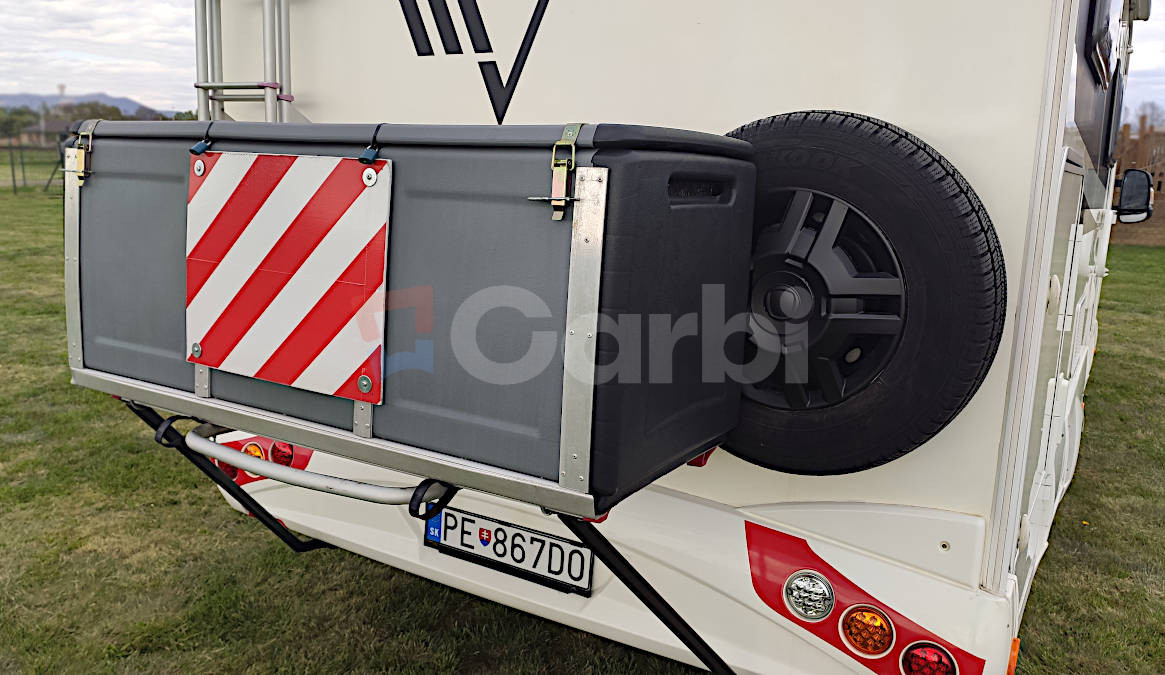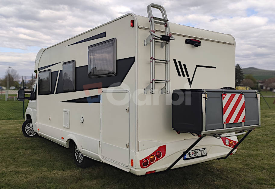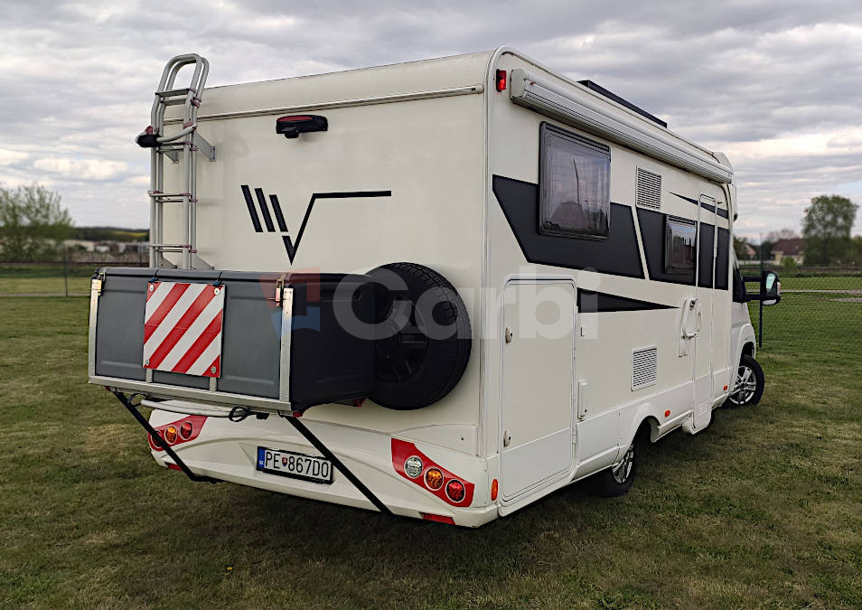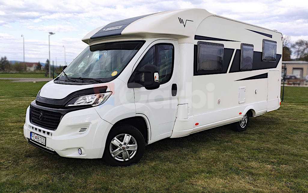 Podvozok Fiat Ducato, Motor Iveco 2.3, Hmotnosť max. 3.5T (využiteľná hmotnosť 612kg), Otypované pre 5 osôb na jazdu a 4 osoby na spanie, Manuálna klíma pre kabínu+ automatická (programovateľná) pre obytnú zónu, Radio Zenec s navigáciou s kempami v celej EU, Zabezpečenie Zeder, Gáráž pre moto so zosilnenou podlahou, Nosič na bicykle vzadu+ box, Markíza FIAMM 4,5 M s LED osvetlením, Solárne strešné panely+ batérie, Automatický satelit+ 2x smart TV (chodba+spálňa), Duo control pre plynové fľaše+ vonkajšia plyn. prípojka (bez výbratia fľaší), Detektor plynov, Prípojka na gril, Odpojovač batérie s diaľkovým ovládaním, Termo plachta kabíny, Mikrovlnka+ chladnička+ mrazák, Sprcha+ umývadlo+ chemické wc, Plynový varič+ drez, Sieťky proti hmyzu na všetkých oknách