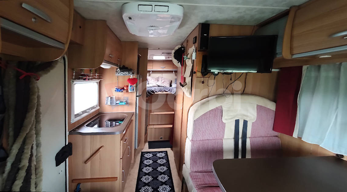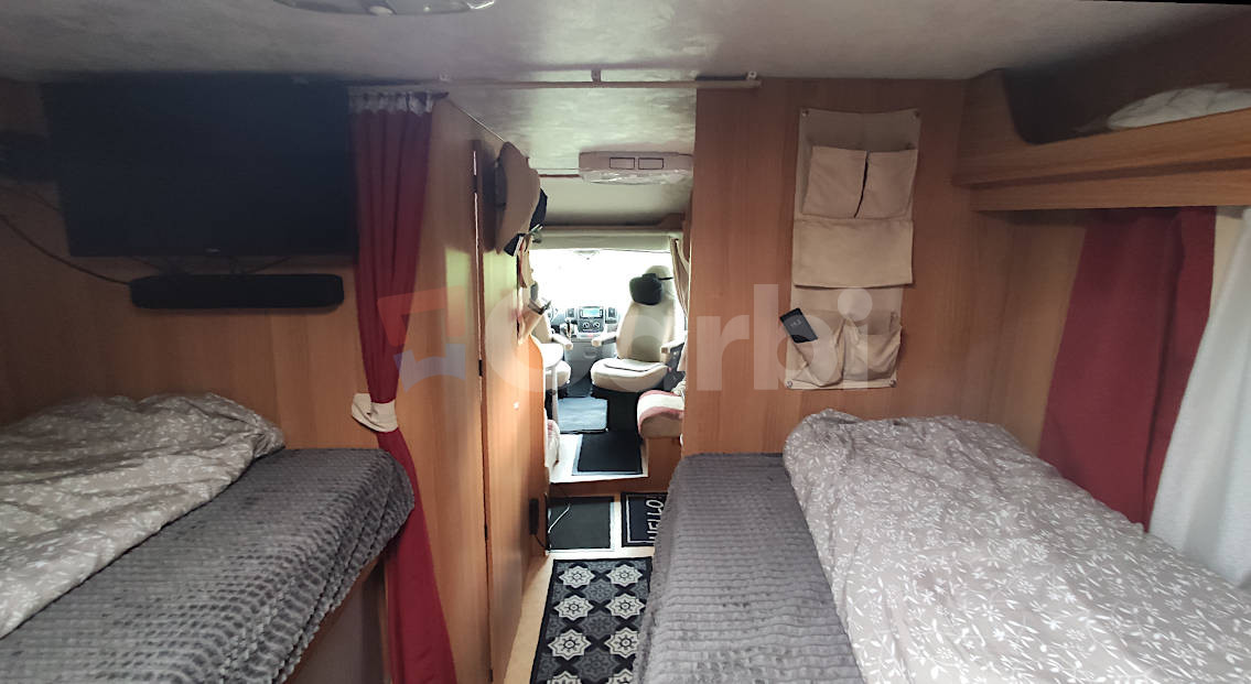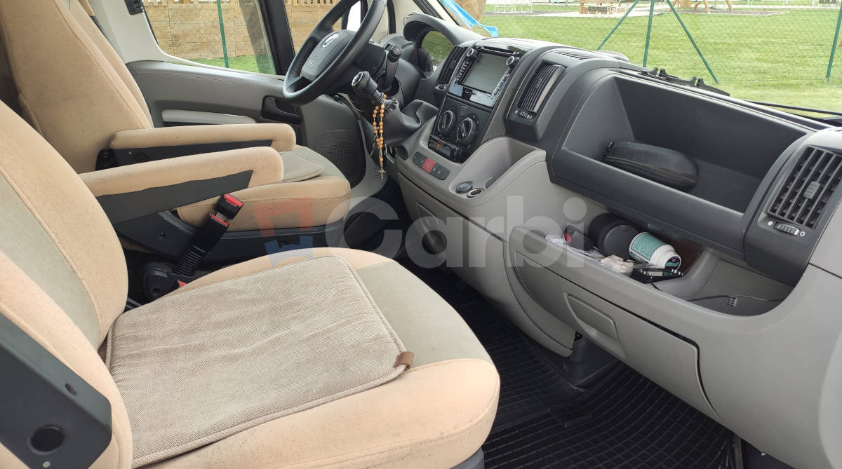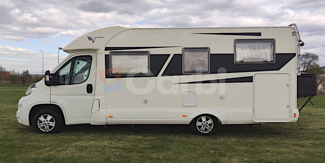 Podvozok Fiat Ducato, Motor Iveco 2.3, Hmotnosť max. 3.5T (využiteľná hmotnosť 612kg), Otypované pre 5 osôb na jazdu a 4 osoby na spanie, Manuálna klíma pre kabínu+ automatická (programovateľná) pre obytnú zónu, Radio Zenec s navigáciou s kempami v celej EU, Zabezpečenie Zeder, Gáráž pre moto so zosilnenou podlahou, Nosič na bicykle vzadu+ box, Markíza FIAMM 4,5 M s LED osvetlením, Solárne strešné panely+ batérie, Automatický satelit+ 2x smart TV (chodba+spálňa), Duo control pre plynové fľaše+ vonkajšia plyn. prípojka (bez výbratia fľaší), Detektor plynov, Prípojka na gril, Odpojovač batérie s diaľkovým ovládaním, Termo plachta kabíny, Mikrovlnka+ chladnička+ mrazák, Sprcha+ umývadlo+ chemické wc, Plynový varič+ drez, Sieťky proti hmyzu na všetkých oknách