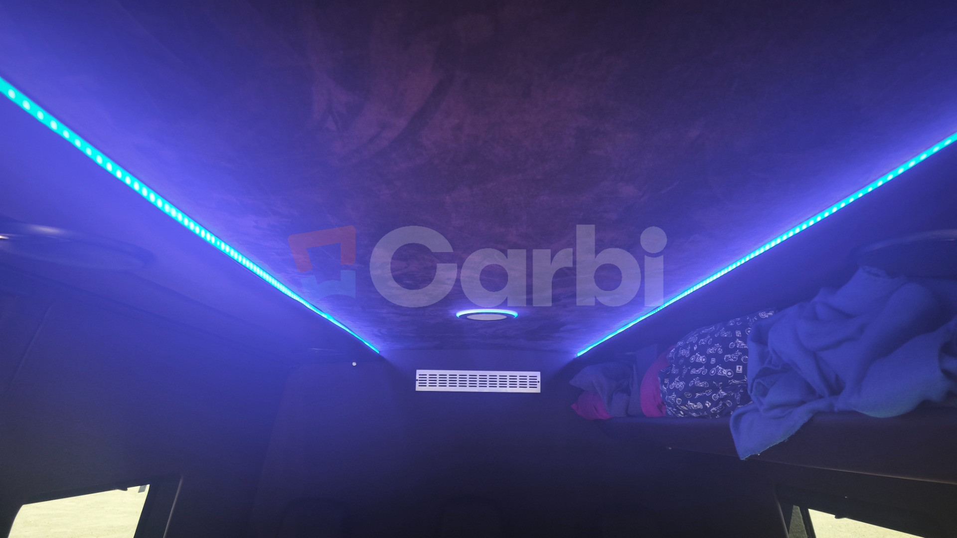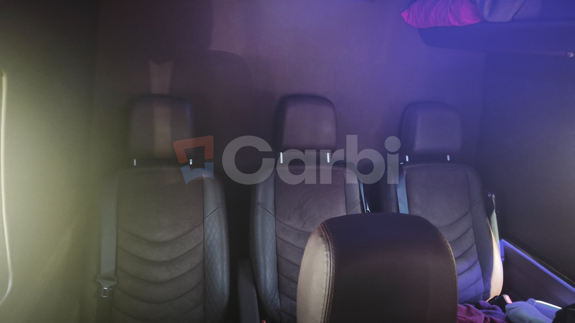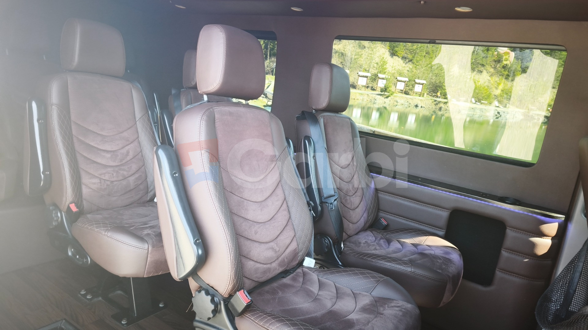 Interiér vozidla robený na mieru . Auto slúžilo na dlhé transfery do Švajčiarska, Nemecka ,Rakúska.