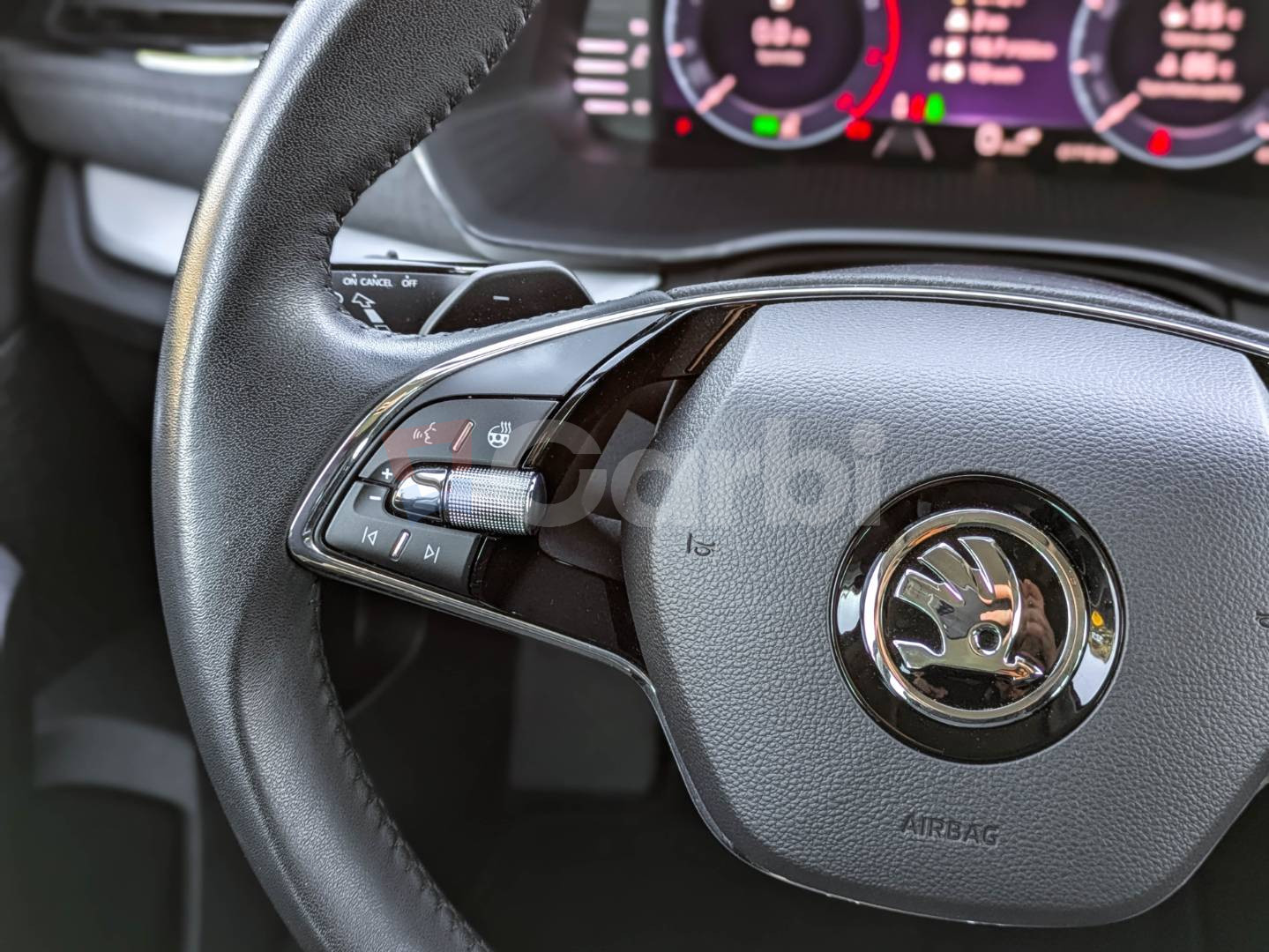 2-ramenný vyhrievaný kožený multifunkčný volant s ovládaním na rádio a telefón ovládaním DSG prevodovky, DRIVER ALERT - asistent rozpoznania únavy, Dáždnik vo dverách na strane vodiča, EASY START - Centrálne zamykanie s diaľkovým ovládaním a štartovaním tlačidlom, Elektricky sklopné vonkajšie spätné zrkadlá s automatickým stmievaním na strane vodiča LIGHT AND RAIN ASSIST - dažďový a svetelný senzor a vnútorné spätné zrkadlo s automatickým stmievaním, FRONT ASSIST - výstraha pred kolíziou a podpora núdzového brzdenia PEDESTRIAN MONITOR (ochrana chodcov), FULL LED Matrix predné svetlomety s AFS funkciou, LED predné hmlové svetlomety, LED zadné svetlá LED s dynamickými ukazovatelmi smeru a..uvítacím efektom, Parkovacia kamera vzadu