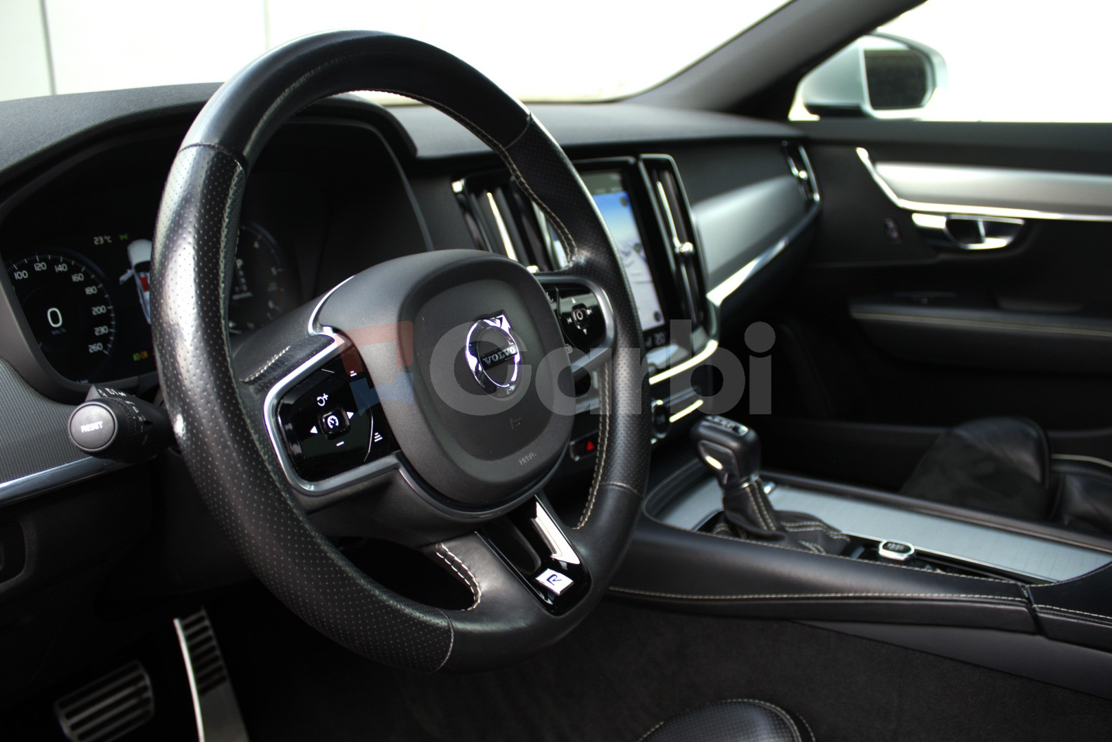 2 sady Volvo kolies 19 a 18, , Elektrická 4-smerová bedrová opierka sedadiel vodiča a spolujazdca, R-Design lakované nárazníky a lakované spodné lišty karosérie, R-Design športové čierne čalúnenie - koža Nappa/textil Nubuck, Systém automatického brzdenia po náraze na zabránenie sekundárnym nehodám, Systém pohltenia energie vertikálneho nárazu v predných sedadlách - ochrana pred zranením chrbtice, Systém prípravy predných bezpečnostných pásov pred hroziacou nehodou